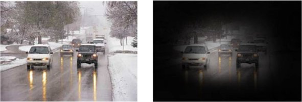 밝은 빛 주변에서 후광 또는 무지개를 본다.