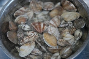 -. 나절 후 깨끗한 물에 바지락을 여러 번 헹군다.