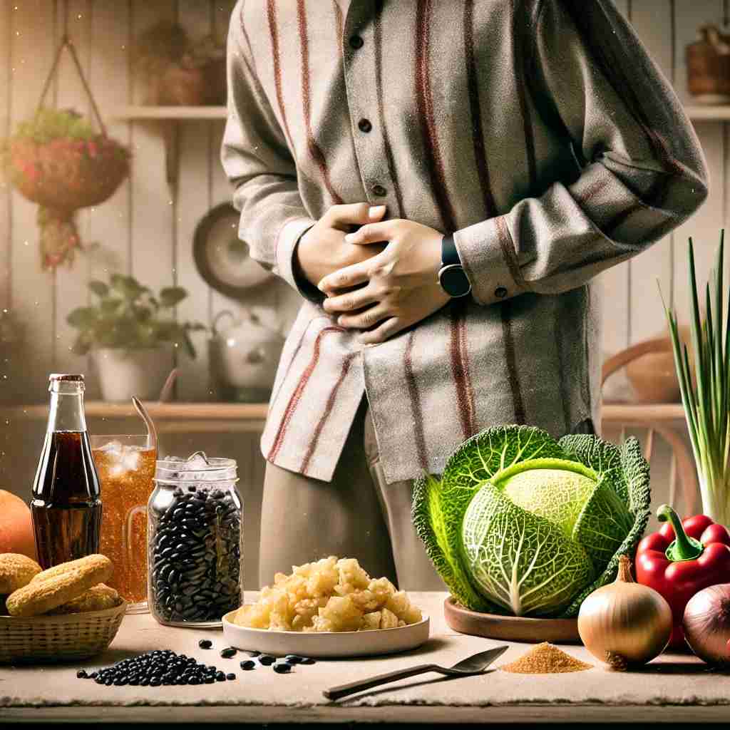 - 고섬유질 음식: 콩류(렌틸콩, 병아리콩, 완두콩), 브로콜리, 양배추, 콜리플라워, 양파 등은 섬유질이 많아 장내 박테리아에 의해 발효되면서 가스를 생성할 수 있습니다.