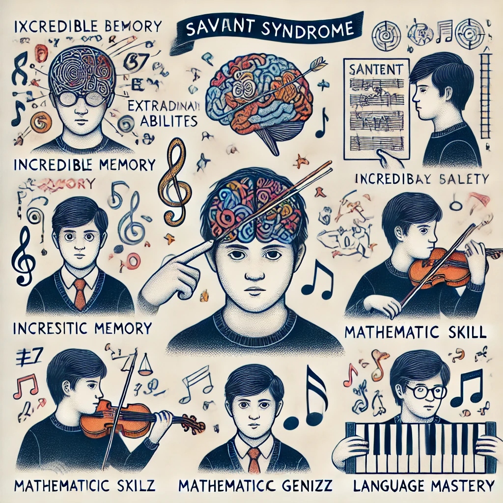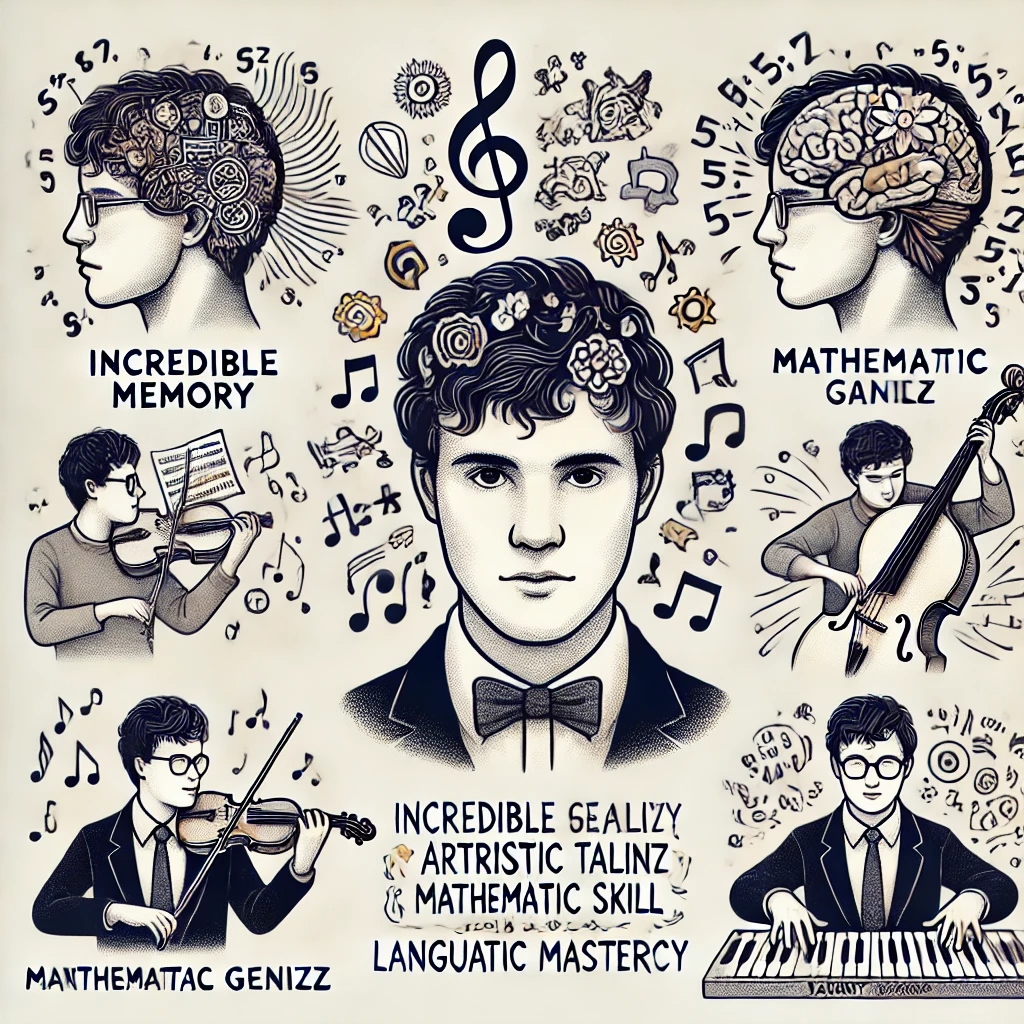 - 음악적 재능: 많은 서번트 증후군 환자들이 절대음감을 가지고 있거나, 복잡한 곡을 한번 듣고 나서 그대로 재현할 수 있는 능력을 보입니다.