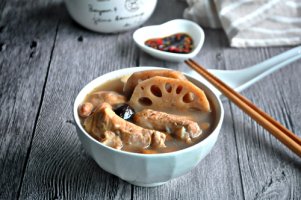 연근은 아스파라긴, 티록신, 아르기닌 등의 아미노산이 많고 비타민, 펙틴, 비타민 B12, 비타민C 등이 풍부해 말초 혈액순환을 왕성하게 하여 피부의 신진대사를 좋게 한다. 또한, 내장 전체의 활동을 부드럽게 하고, 각 기관 활동을 촉진하여 기미와 여드름 예방에 도움을 준다.