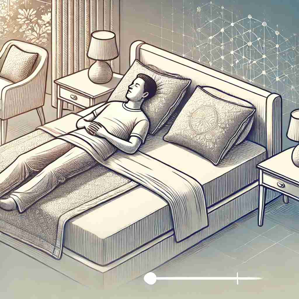 - 어지럼증이 발생하는 방향으로 옆으로 누워 머리를 약 45도 각도로 올립니다. 이 자세를 약 30초간 유지합니다.