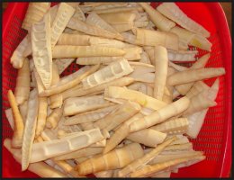 1. 죽순은 중간 부분을 깨끗이 손질하여 빗살무늬가 살도록 얇게 저민다.