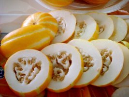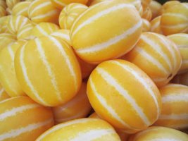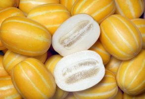 껍질은 노란 삧깔이며 과육은 흰색과 옅은 노란색을 띠고 있으며 고온 건조한 기후에서 잘 자라 여름철에 많이 먹습니다. 생육온도는 낮에는 25~30℃, 밤에는 18~29℃가 적당하며 온도가 16℃ 이하로 되면 생장이 억제가 됩니다.