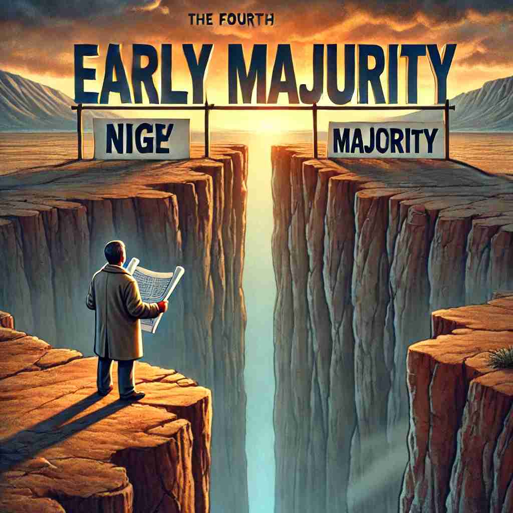 캐즘은 초기 수용자와 초기 다수자 사이에 존재하는 큰 간극을 의미합니다. 혁신적인 기술이나 제품이 초기 수용자들 사이에서 성공적으로 도입되더라도, 이를 넘어 주류 시장인 초기 다수자에게 확산되기 위해서는 매우 다른 전략적 접근이 필요합니다. 이 간극을 넘지 못하면 제품은 일시적인 성공에 그치고, 시장에서 도태될 위험이 있습니다.