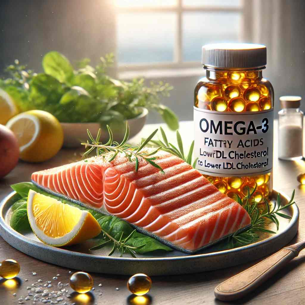 오메가-3 지방산은 심혈관 건강에 매우 유익한 성분으로, LDL 콜레스테롤 수치에 직접적인 영향을 미치지는 않지만, 중성지방 수치를 낮추고, 심장 질환의 위험을 줄이는 데 도움을 줄 수 있습니다. 이 지방산은 고등어, 연어, 참치와 같은 지방이 많은 생선, 아마씨, 치아씨드, 호두 등에서 풍부하게 발견됩니다.