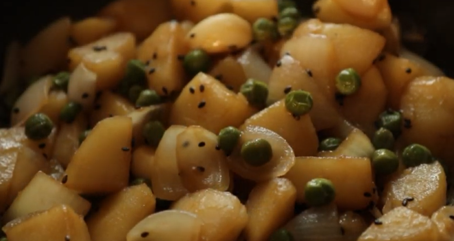 기름에 감자를 볶아 조림을 만들면