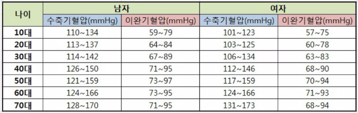나이별 혈압 정상수치